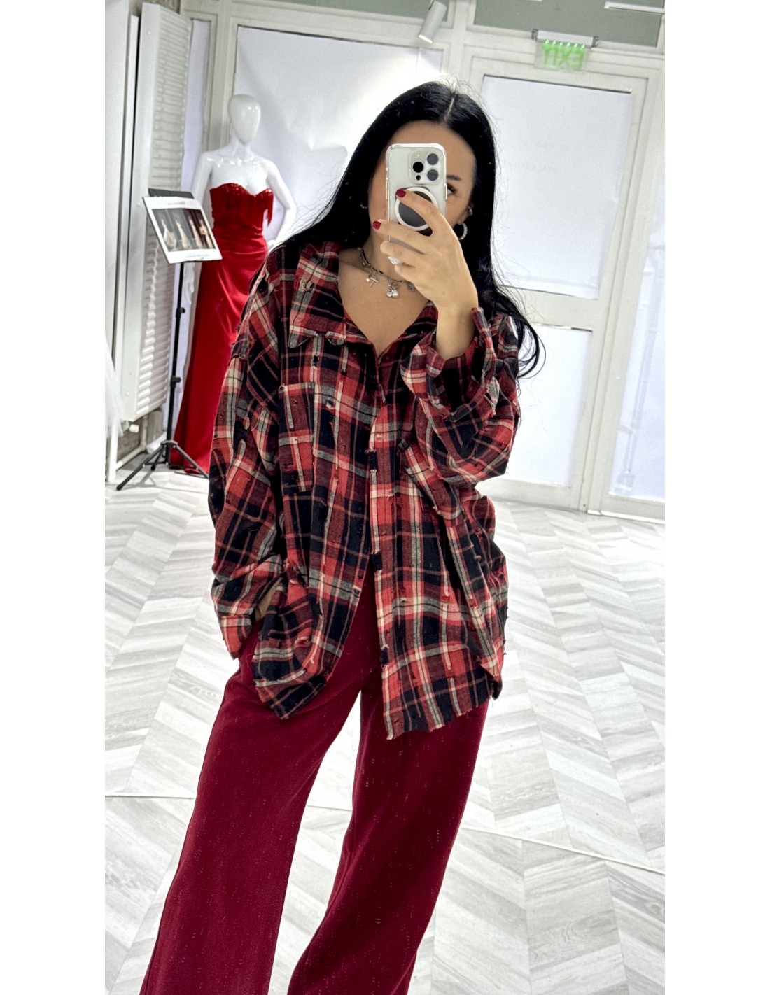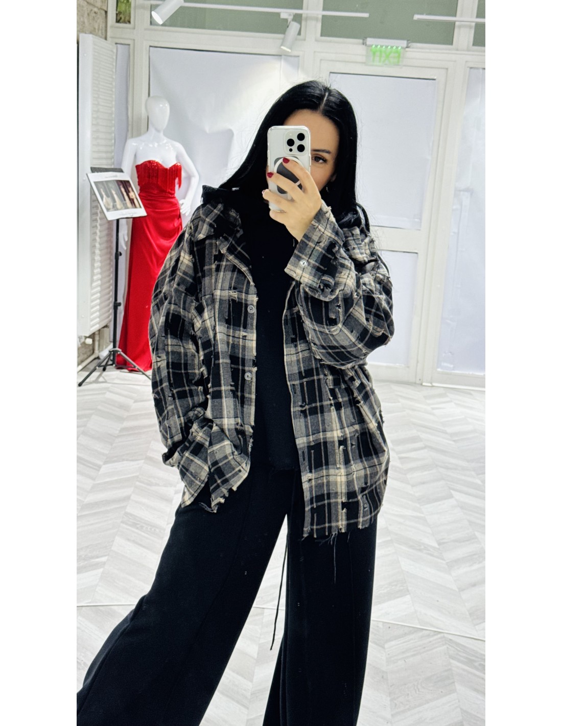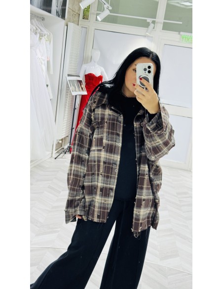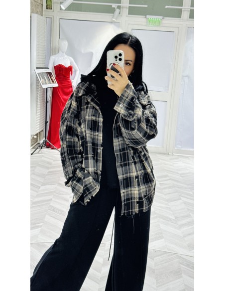 Camasa ULTRA din amestec de bumbac, distressed, oversized, cu 2 buzunare pe piept.