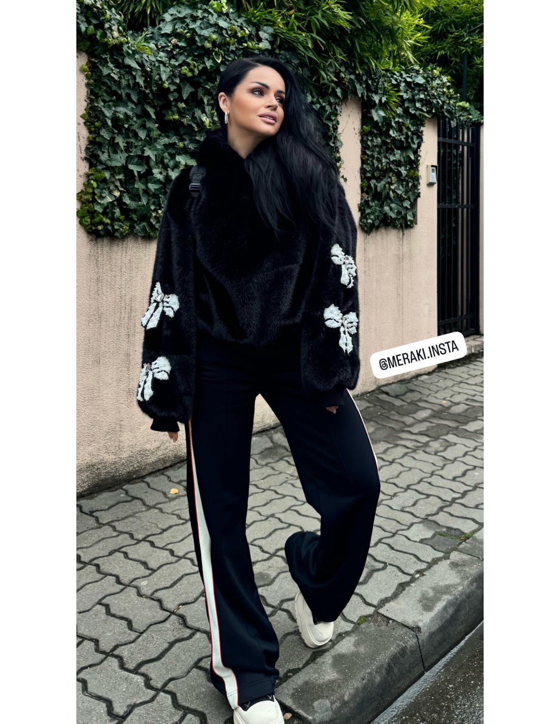 Hanorac cu gluga din blana cu fir mediu, si fundite aplicate.